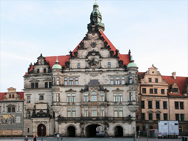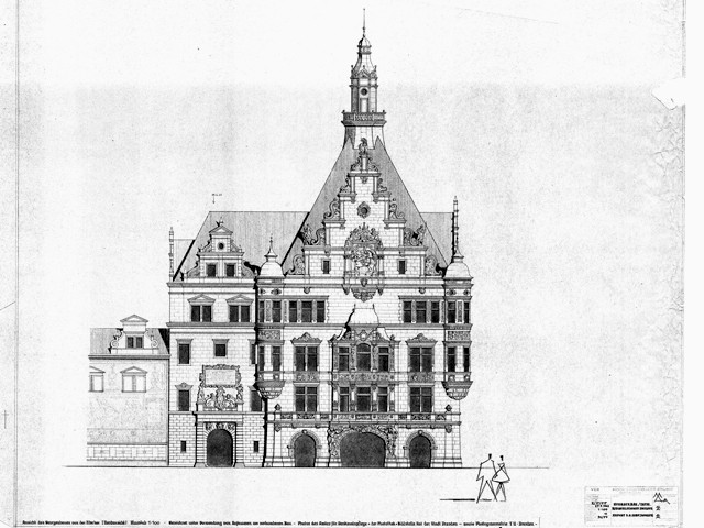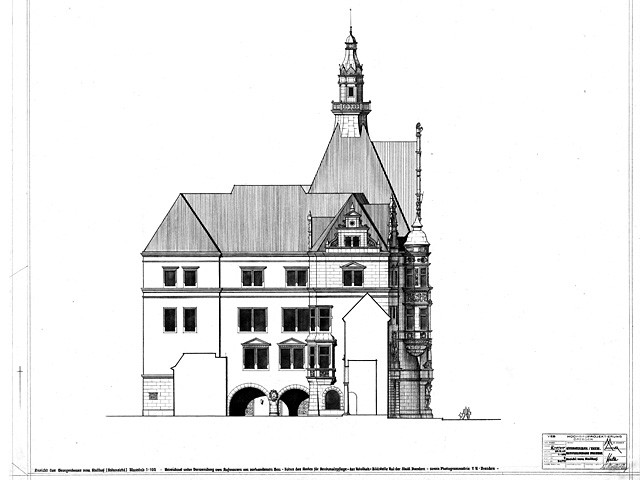 Errichtung 1530 bis 1535, Umbau 1889 bis 1902 von den Architekten Dunger und Frölich. Zerstörung 13. Februar 1945. Wiederaufbau im Baustil der Renaissance 1960 bis 1963 unter Leitung des Architekten Dipl. Ing. Manfred Arlt. Erstnutzung als Rechenzentrum der Stadt Dresden durch Aufstellung des ersten Großrechners R-300.